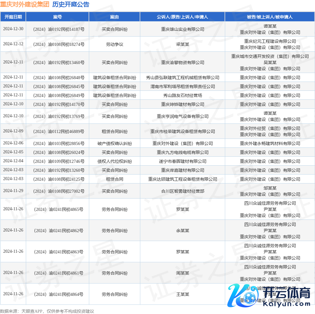 本站音书,确认天眼查APP透露云开体育,近日公布了一则重庆对外开采(集团)有限公司看成被告/被上诉东谈主的开庭公告,防御现实如下: