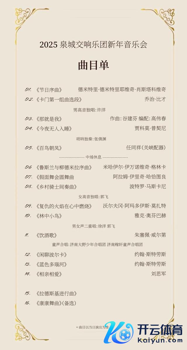 《节日序曲》以其沸腾的旋律拉开了新年音乐会的序幕,展现了节日的喜庆与隆盛,是世界各地音乐会常见的开场曲目。《蓝色多瑙河》与《谈天波尔卡》均出自约翰·施特劳斯之手,前者以其荡漾动东谈主的华尔兹旋律,后者则以简约幽默的节律,共同展现了维也纳音乐的优雅与魔力。《卡家世一组曲选段》与《饮酒歌》折柳来自比才与威尔第的经典歌剧,通过交响乐的形状再现了歌剧中的经典旋律,让不雅众在音乐的海洋中飘舞,感受西方古典音乐的魔力。《彻夜无东谈主入睡》四肢普契尼歌剧《图兰朵》中的咏叹调,以其深情飞腾的旋律,成为世界名曲中的不灭之作,传递了对摆脱与爱的永恒追求。多个世界名曲,涵盖了节日仪式的沸腾、华尔兹的优雅、波尔卡的幽默、歌剧的样式与咏叹调的深情,共同展现了世界音乐文化的各样性和丰富性。