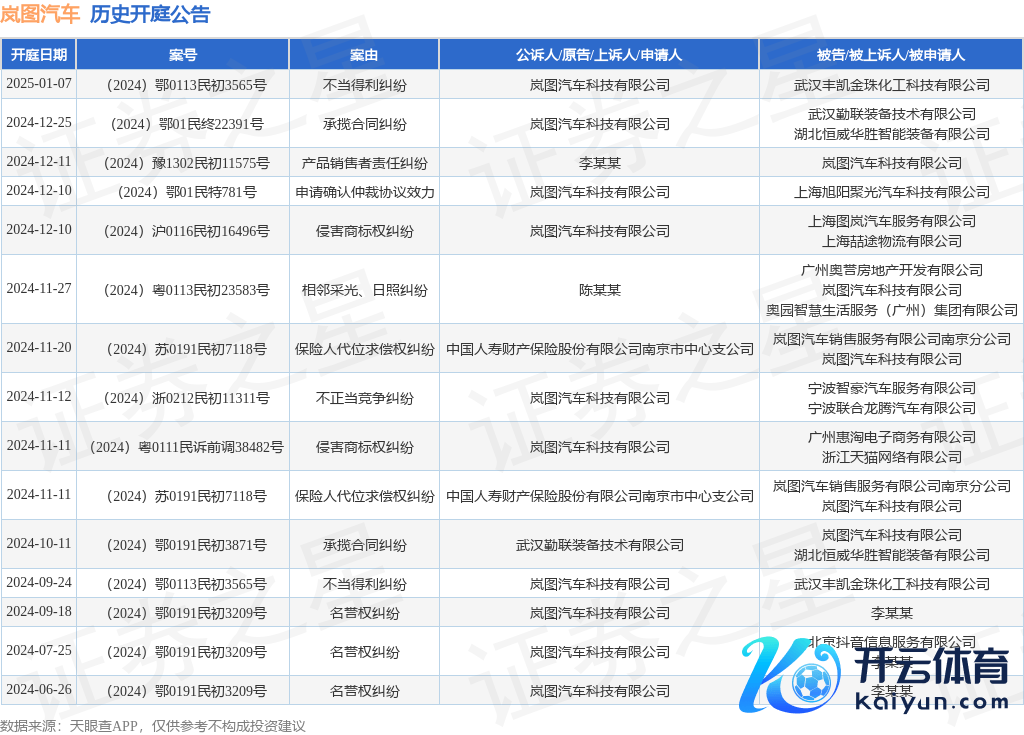 本站音尘云开体育,字据天眼查APP浮现,近日公布了一则岚图汽车科技有限公司行为原告/上诉东说念主的开庭公告,详备实验如下: