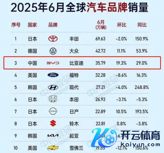 可是到本年6月时,全球汽车销量数据显现,比亚迪以35.79万辆位居第三,丰田(69.63万辆)和民众(42.72万辆)分列前两位,这亦然中国车企有史以来赢得的最佳收获。
